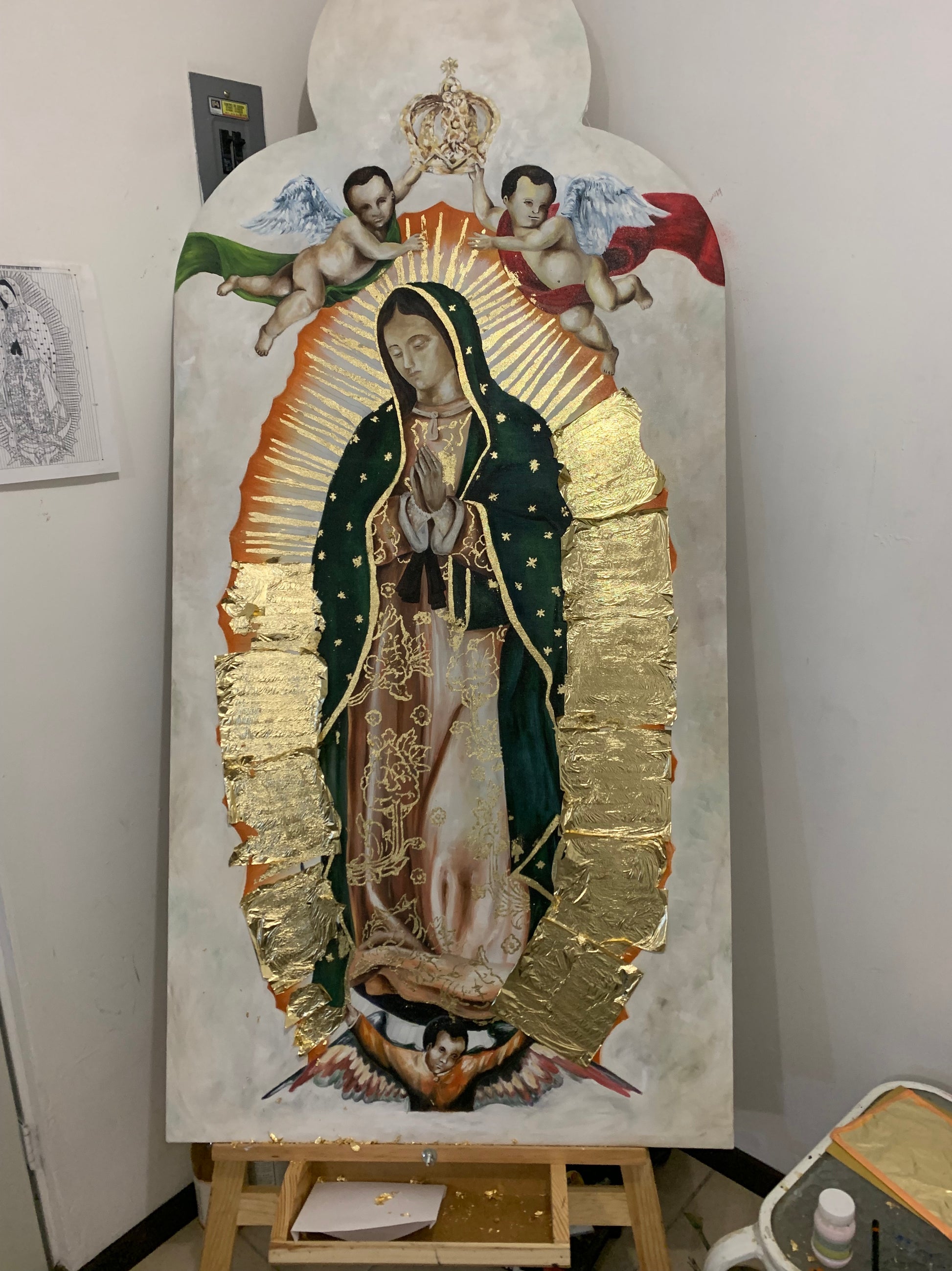 ÓLEO SOBRE LIENZO CON HOJA DE ORO 125 cm x 85 cm